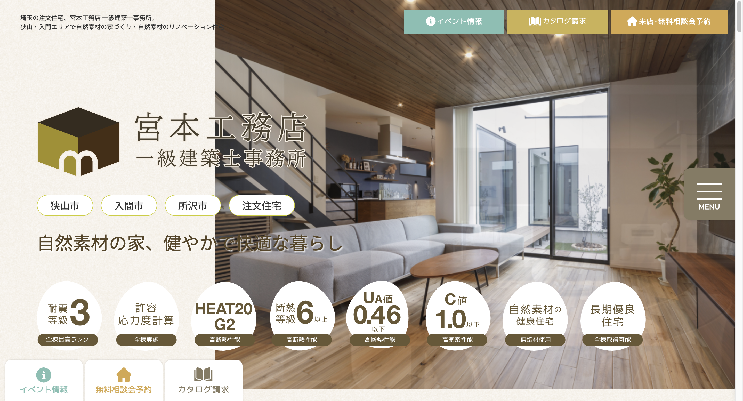 入間市を拠点に、自然素材を巧みに用いたデザイン性の高い注文住宅を手がけています。